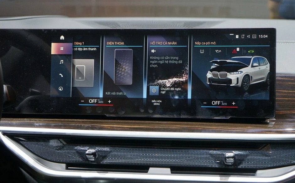Tiện Nghi Cao Cấp: BMW X5 xDrive40i M Sport 2025 được trang bị hàng loạt tiện nghi cao cấp như: hệ thống điều hòa tự động 4 vùng độc lập, hệ thống âm thanh Harman Kardon (tiêu chuẩn) hoặc Bowers & Wilkins Diamond Surround Sound System (tùy chọn), cửa sổ trời toàn cảnh Panorama (tùy chọn), đèn viền nội thất Ambient Light, sạc điện thoại không dây, ghế trước chỉnh điện tích hợp nhớ vị trí, thông gió và sưởi ấm (tùy chọn), hàng ghế thứ hai có thể gập 40:20:40, rèm che nắng chỉnh điện (tùy chọn),…
